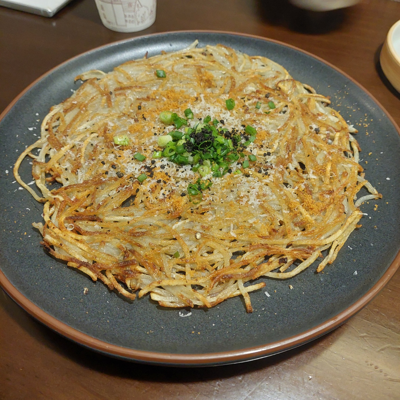 감자전은 채설은 감자를 바싹 기름에 튀겨서 식감이 바삭바삭하고 정말 고소했습니다~~