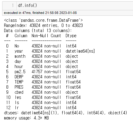object였던 데이터 형식이 datetime 형식으로 잘 바뀐 것을 볼 수 있습니다.