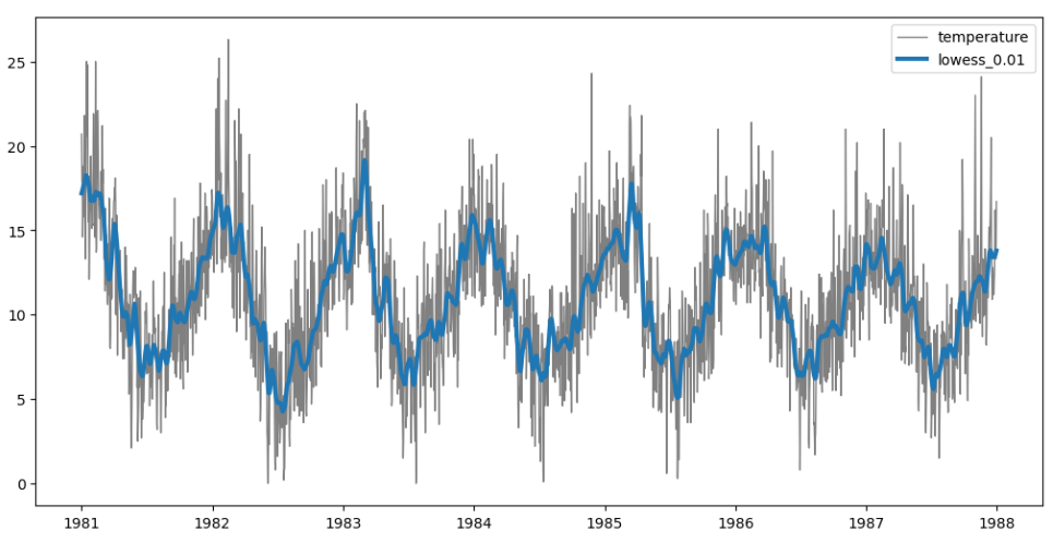위의 classic방식에서 이동평균 기간으로 smoothing을 조절했다면 여기서는 frac이라는 파라미터를 조절하여 smooth한 정도를 조절할 수 있습니다. frac 파라미터가 작을수록 더 세밀한 패턴을 그립니다.