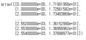 결과값을 출력해보면 array 첫번째 열에 0,1,2,3... 으로 인덱스 처럼 나오고 , 두번째 열에 추세값이 나옵니다.