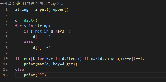 알파벳 대소문자로 된 단어가 주어지면, 이 단어에서 가장 많이 사용된 알파벳이 무엇인지 알아내는 프로그램을 작성하시오. 단, 대문자와 소문자를 구분하지 않는다.