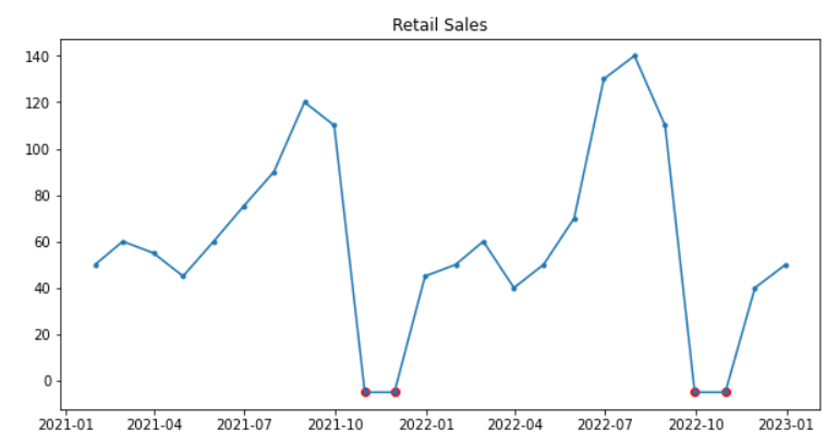 df_filled[df.isnull()].plot(ax=ax, marker='.', color='r', legend=None)
