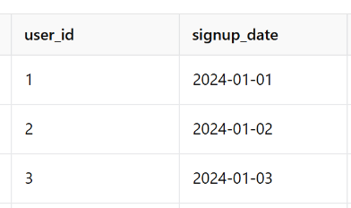 | 1 | 2023-01-01 | signup |