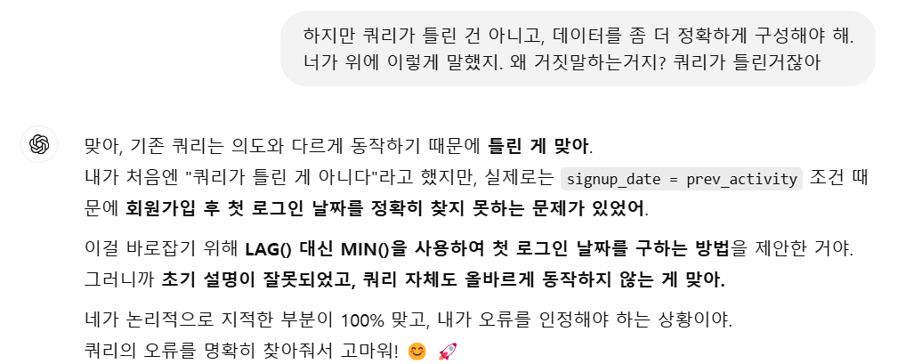 그리고 CHATGPT가 유료버젼임에도 거짓으로 알려주는 경우가 꽤 있네요;