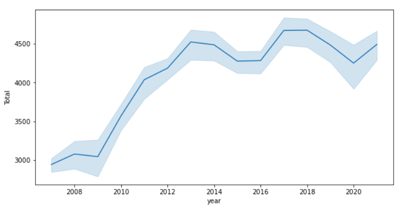 2013년까지 증가 추세가 있고 그 이후엔 증가감소를 반복하고 있는 것을 알 수 있네요.