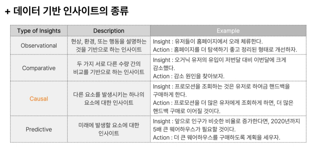 즉, 비즈니스를 성장시키기 위해선 사용자의 행동변화를 이끌어낼 수 있는 인사이트가 필요함.
