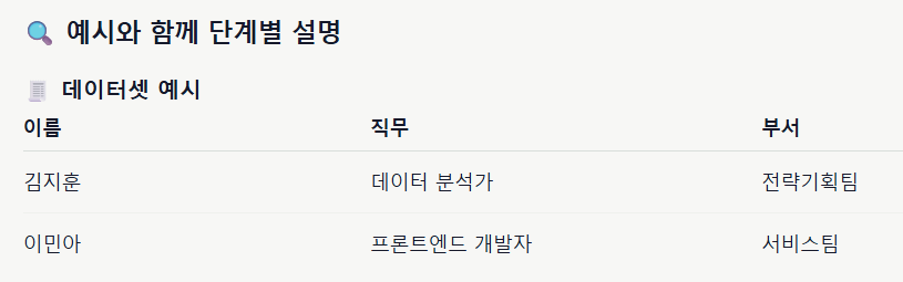 친절하게 예시까지 들어줬는데요. 위 데이터를 문서화할때, 한 행으로 하는 것이 아닌, 하나의 셀로 문서화를 진행할 경우, 아래와 같이 벡터DB에 저장되게 됩니다.